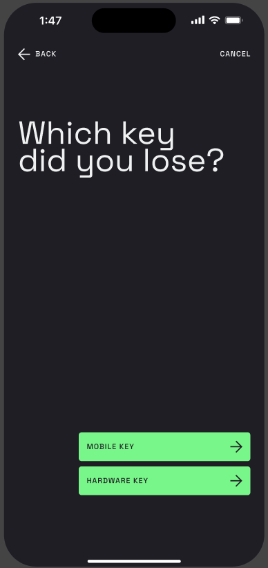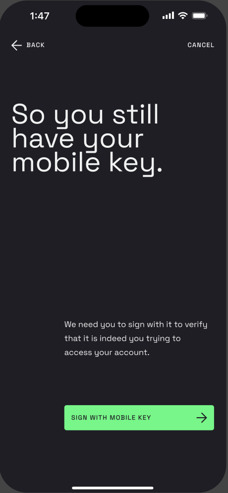 Tap “Sign with mobile key” and confirm using your phone’s passkey.