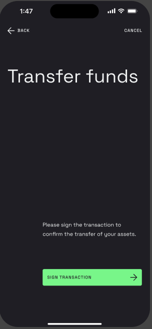 You’ll sign the transaction using your mobile key (passkey).